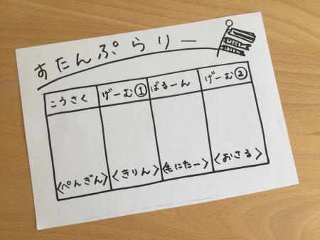 名前を呼ばれて上手にお返事ができたお友達から、次に使うスタンプラリーのカードをもらいました。