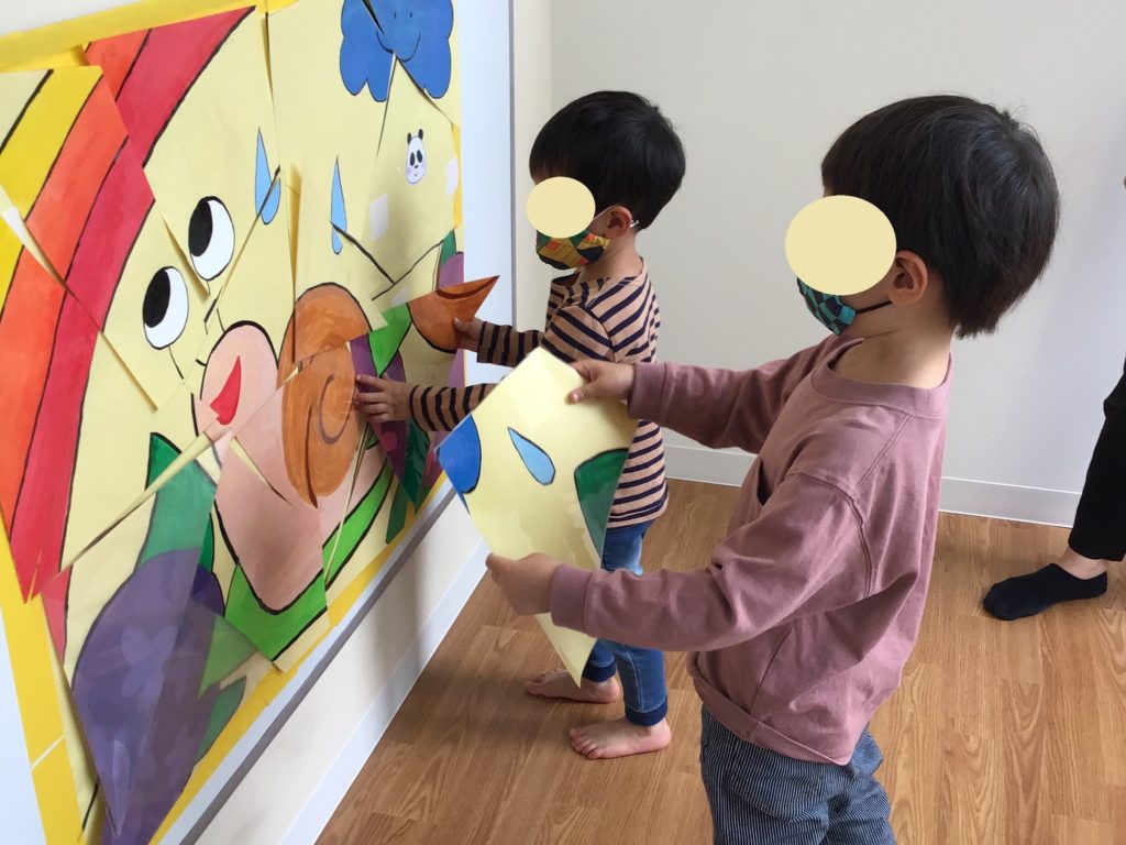 お友達と協力し合って、大きなカタツムリの絵を完成させてくれました。