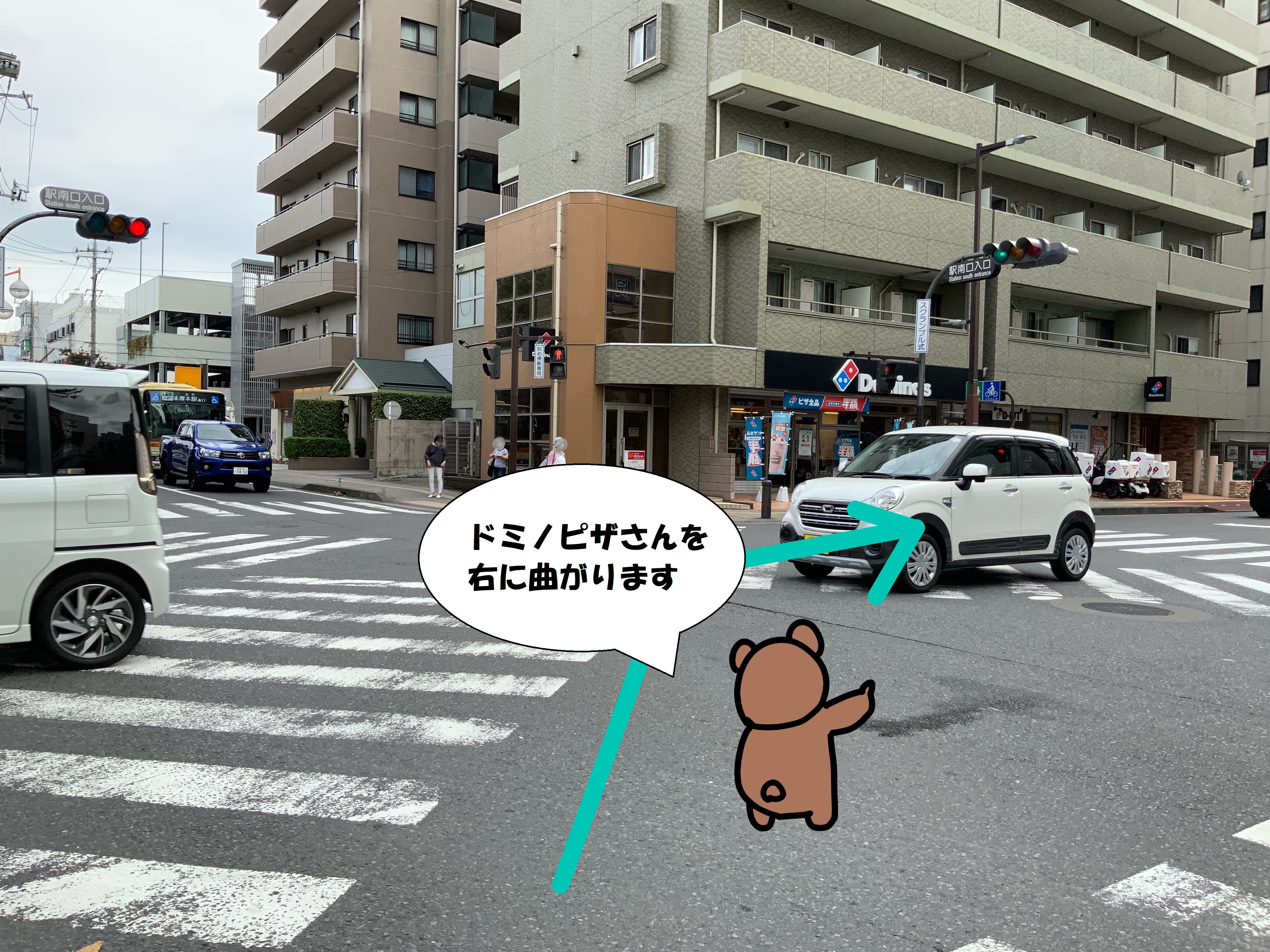 ドミノピザさんを右に曲がります