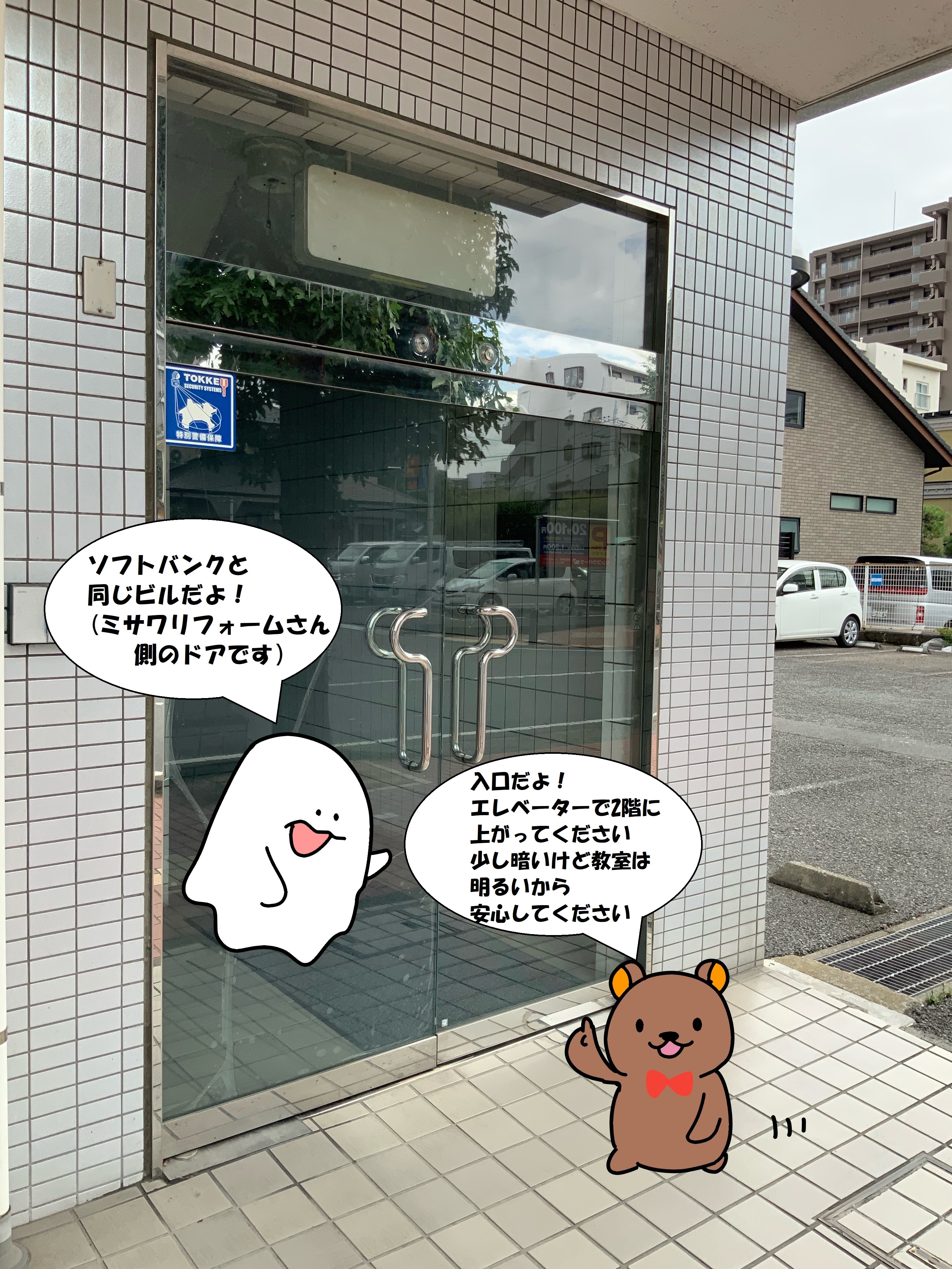 ソフトバンクさんと同じビル、ミッフィーがいるミサワリフォームさん側が入口になります。