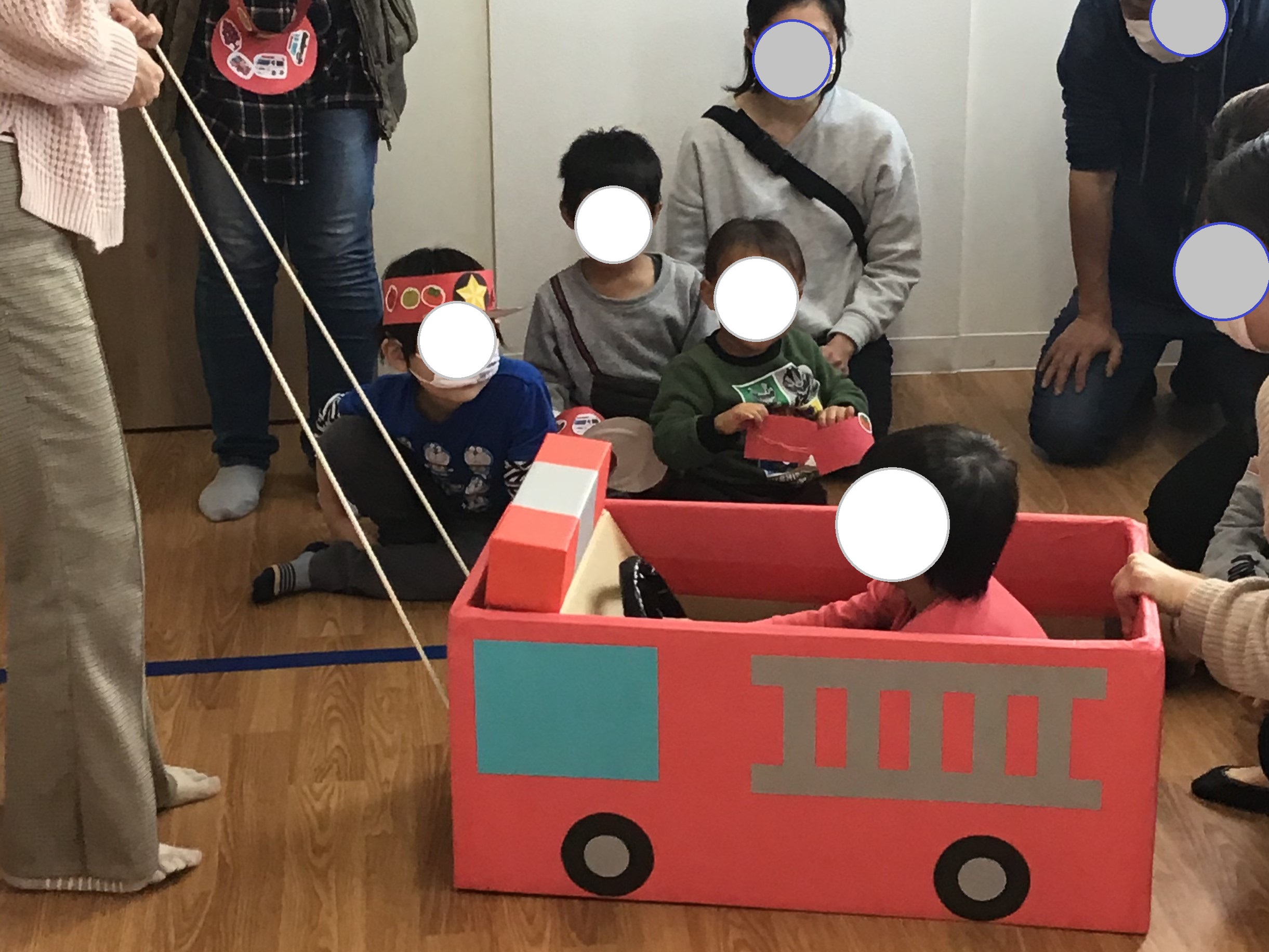 今回はその一つ、“消防車体験”のために手作りした段ボール消防車が完成しましたので、ひと足先にお披露目します♪