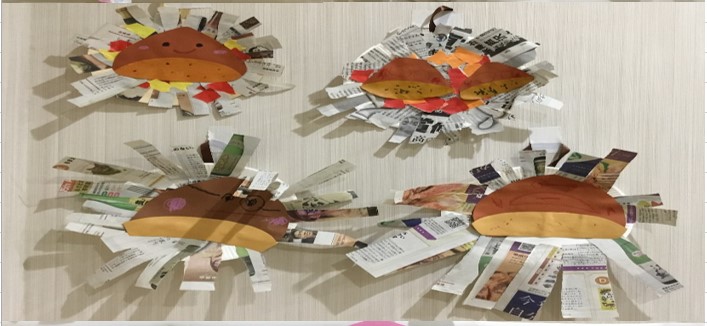 新聞紙を握って詰めていく作業を行うことで指先の力や、握る力を使う微細運動をねらいとして行いました!!また、絵の具だけを使って色付けも行いましたが、グラデーションになるように上手に表現することができました(≧▽≦)