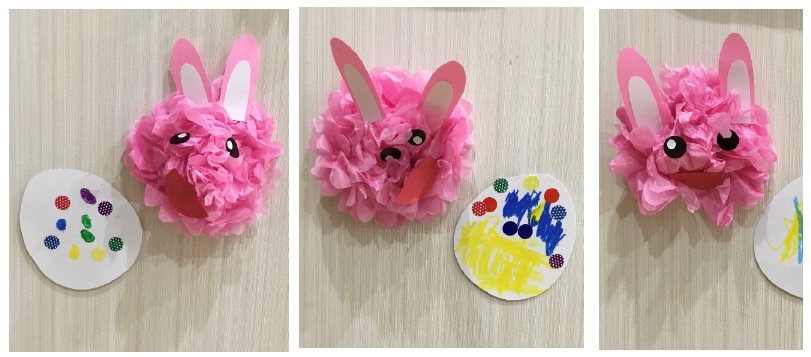 お花紙で作ったかわいいうさぎと春色のイースターエッグ。