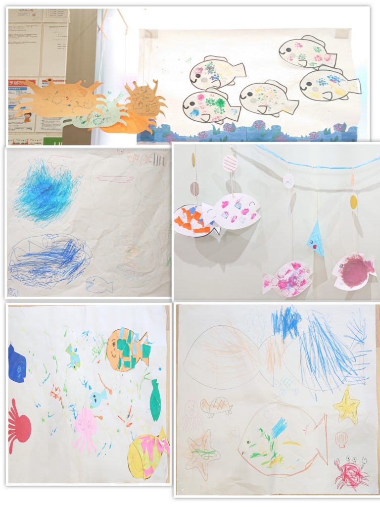 集団支援では、魚やカニ、海の中の生き物を表現し教室が夏をイメージさせた作品でいっぱいになりましたよ。