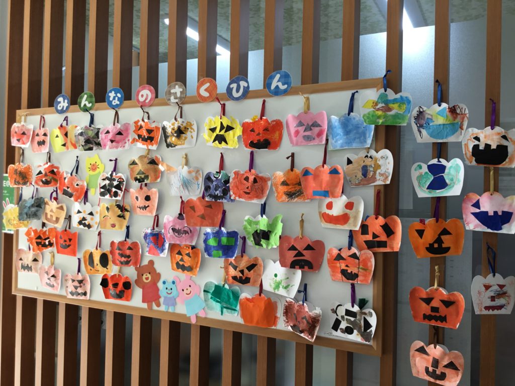 今日はみんなが作った「ジャック・オー・ランタン」と集団療育の作品をお届けしました。