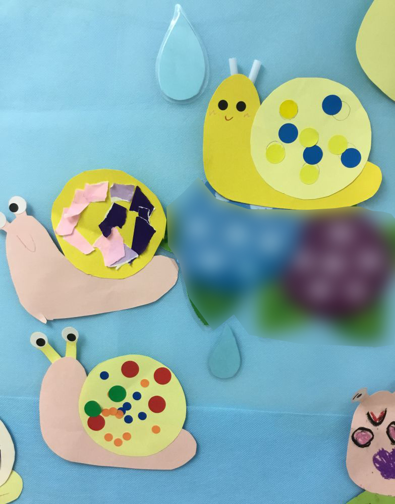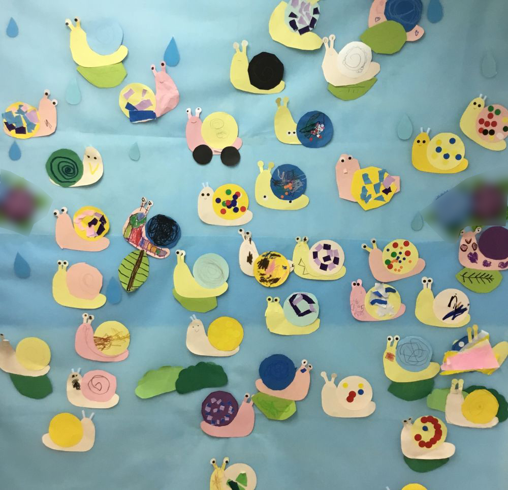 さて、6月の壁面製作『かたつむり』のご紹介です。