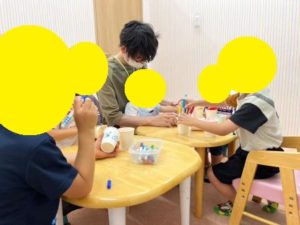 支援前の水分補給はもちろん、お子さまの様子や課題によっては、支援時間中でも水分補給や休憩をとっていただくよう声掛けをしています。