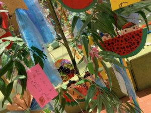 お星さまやすいかの飾りや短冊作りを子供達にお手伝いしてもらい、ふたつの笹がハビー仕様になりました🎋