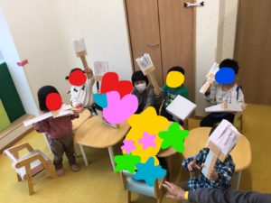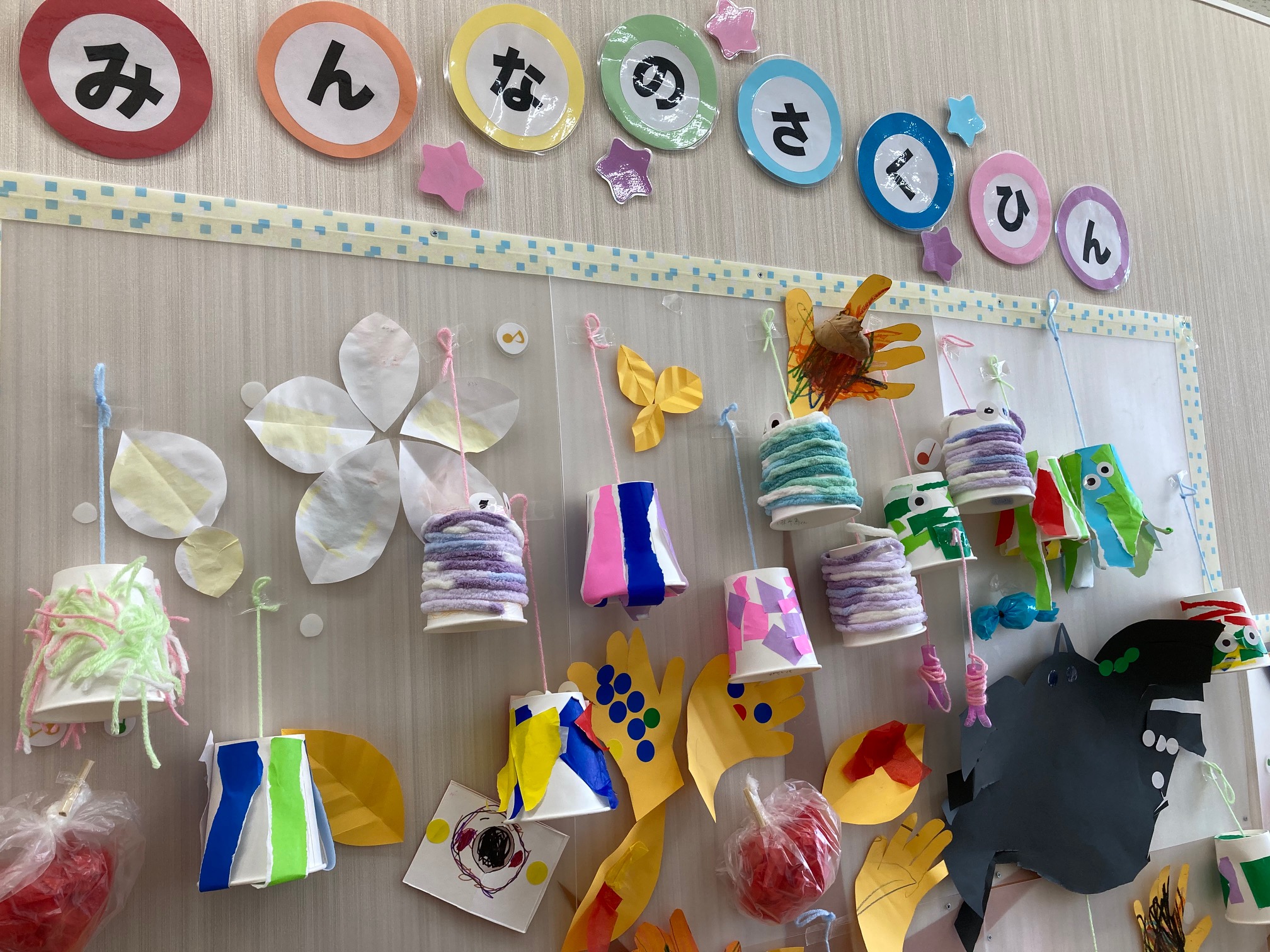 お子さんたちは来所した際に自分の作品を見つけ、「ぼくのあったよ」と素敵な笑顔♪