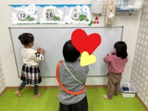 ママやパパに見せるのも壁面制作の楽しみのひとつなのです。![]()