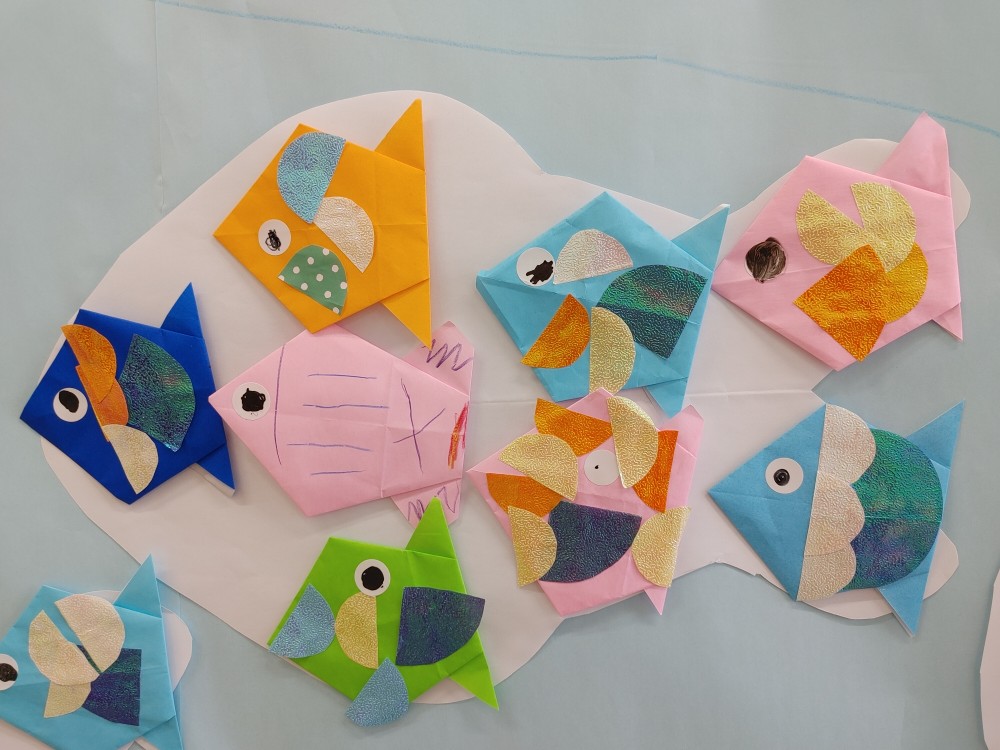 魚もうまく目を描いたりウロコを付けたりと、上手に作っております。