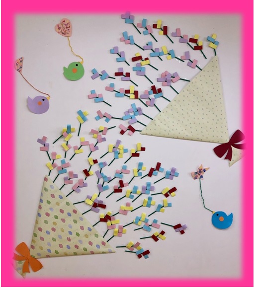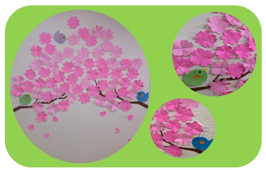 4枚同じものを作ったら、台紙に貼り合わせて桜の完成!