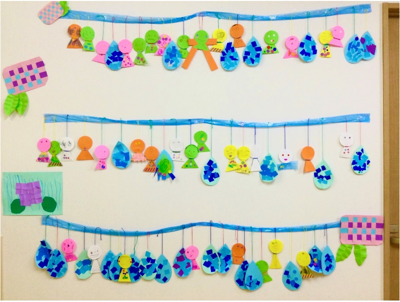 6月は“梅雨でも楽しく!”をテーマにてるてる坊主と雫を作りました🎵