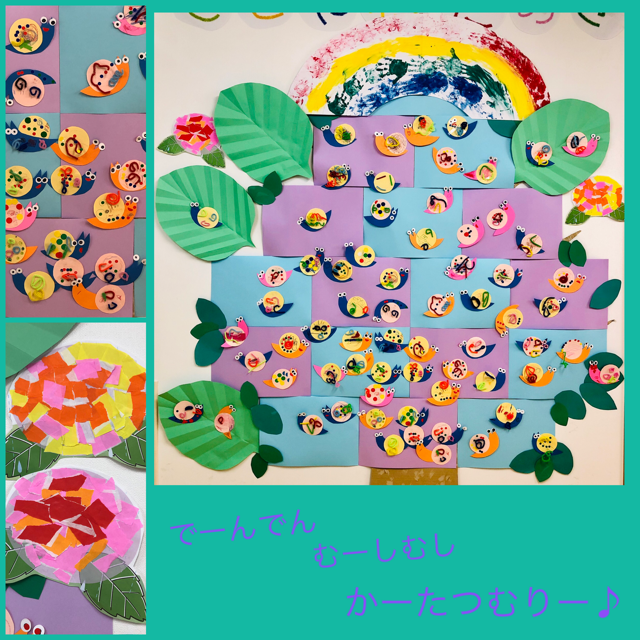 そんなカタツムリが遊ぶ紫陽花の上には、年長集団で作った大きな虹!