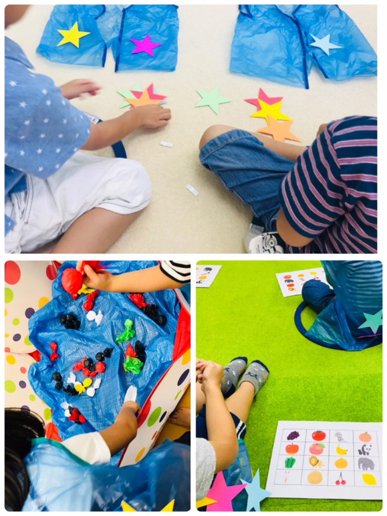袋に名前シールを貼る時には、先生に元気よく名前を伝えることができました!