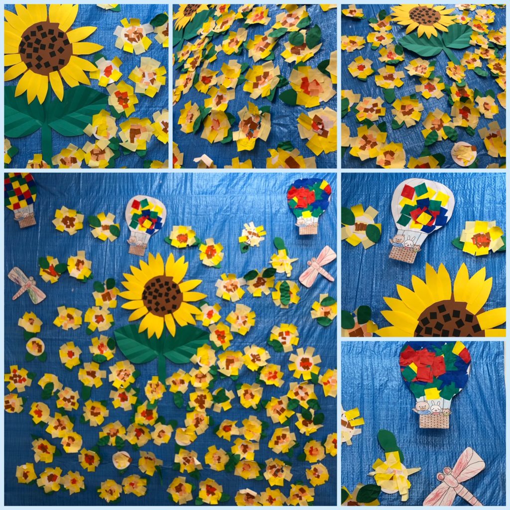 真ん中の大きなひまわりは、年長集団の作品。