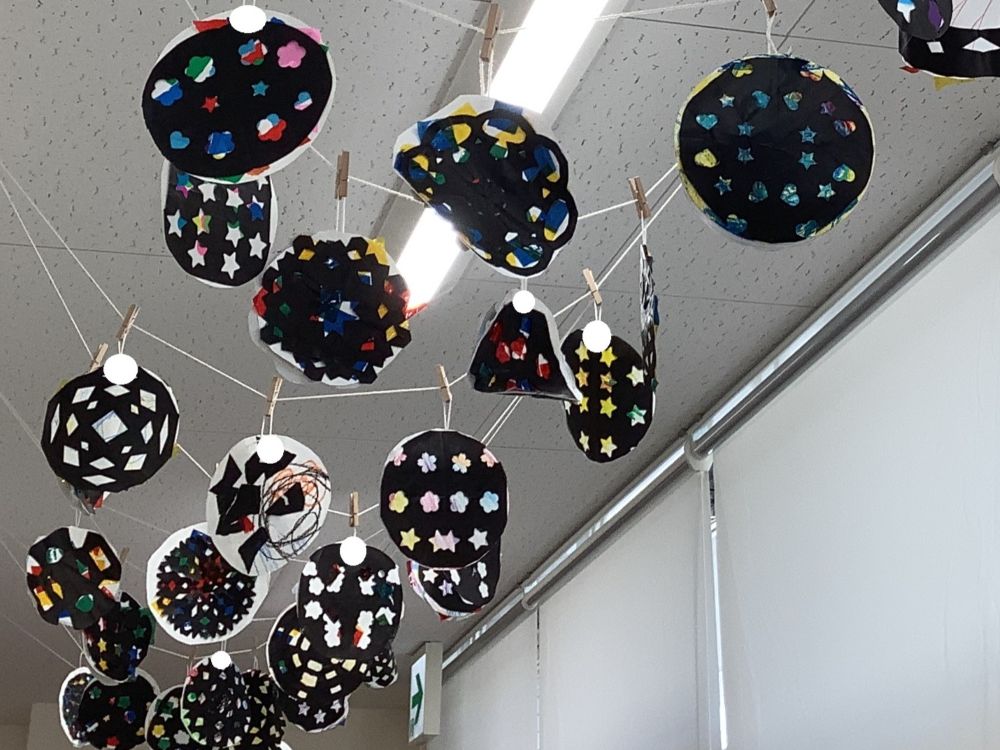 廊下がたくさんの花火で彩られました🥰