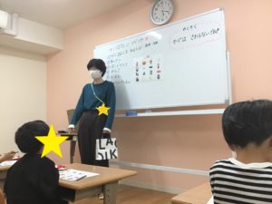 自分で考えたり、指導員にヒントをもらったりしながら、みんなの前でお題を発表することができました★
