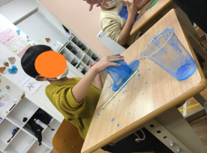 出来上がったら、実際に自分の作ったスライムで遊びました。