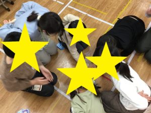 「手を背中に回す」を約束として取り組みました。