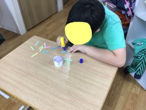 今回は自分の好きな色を絵の具でつけて、