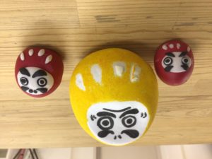 ポンポンと絵具を塗ったり、だるまに顔を描いたり…。可愛いだるまたちがたくさん出来上がりました。