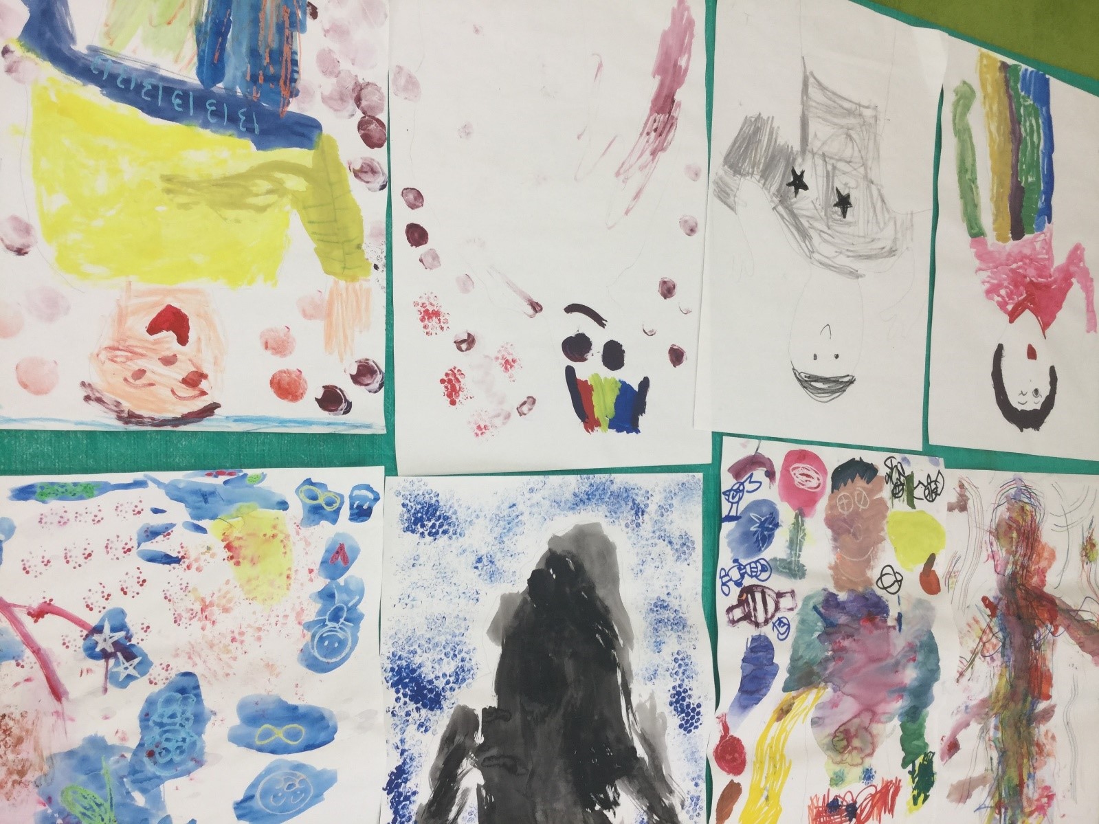 年長集団の中で、模造紙に自分の型を取り自画像を作りました‼
