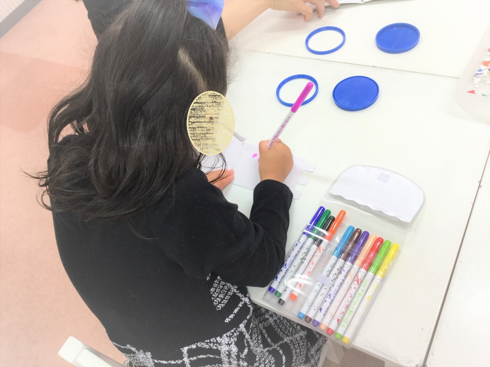 主にお絵かきやシール貼りを活用してプレのお子さんから年長のお子さんが