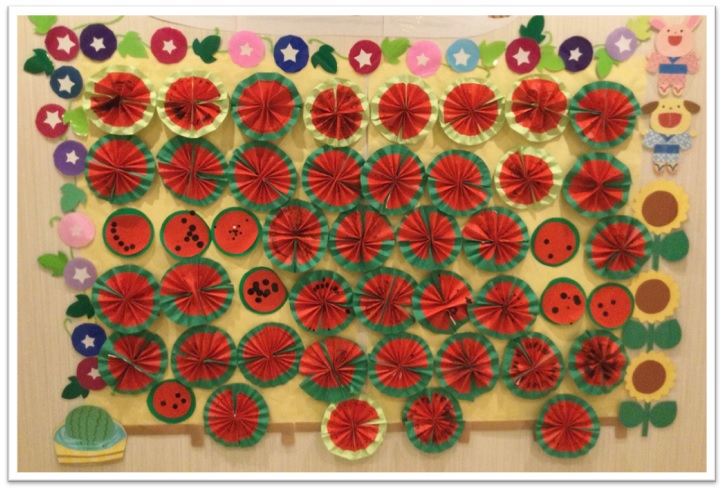 さて今回は「8月の壁面製作」についてご紹介します!!今月のテーマは「すいか」でした🍉