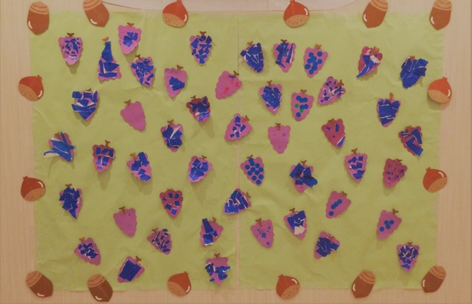 また、子供たちとぶどうや秋についてのお話もしながら楽しんで作り上げることが出来ました😊