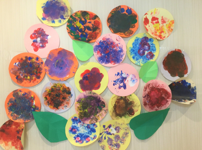 水風船に絵の具をつけて模造紙や画用紙にペタペタ🖌