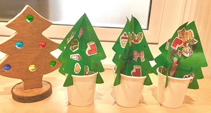 2人1組になってそれぞれがツリーに飾りをつけ、それを組み合わせて1つのツリーに☆お友達のことを考えて話し合いながらパーツを分け合うこともできました!