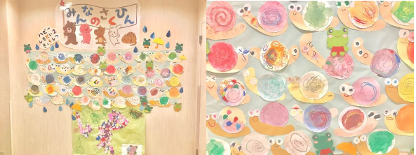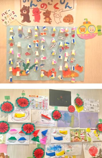また、壁面の飾りはお子さまたちがハサミを使って作ってくれました![]()