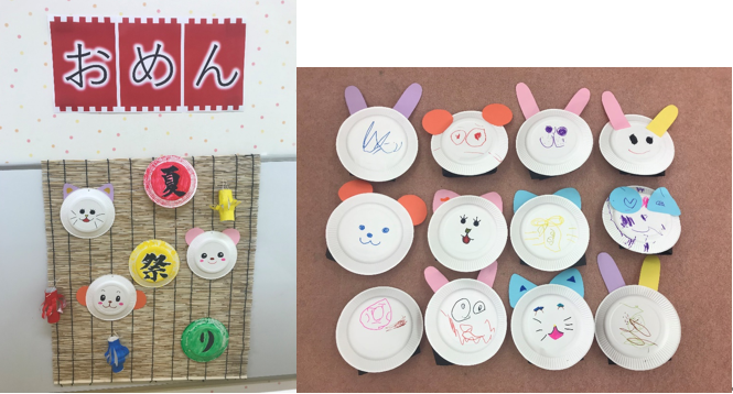 夏祭り前半は保護者の方と一緒に①お面作り、②プラバン、③おみやげ釣り、④わなげ。そして後半はスタッフからの出し物としてマジックショーを行いました🎩
