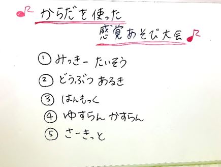 最後にはメダルの授与をしておしまい。クールダウンとして最後に絵本を取り入れることで落ち着いて過ごすことができました。