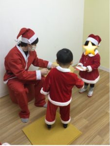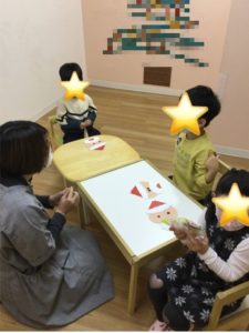 いつもとは違う雰囲気にドキドキしているお友達がいれば、サンタクロースの格好をして楽しみにきてくれるお友達もいてとても可愛いらしかったです。