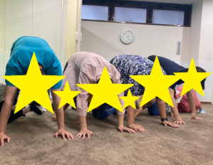 先生の動きを真似しながら、楽しくエビカニクスを踊りました。