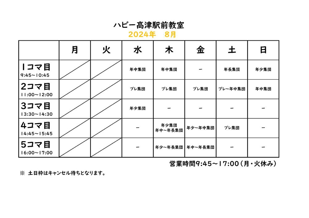 今日はハビー高津駅前教室の今年度の時間割を大公開!