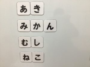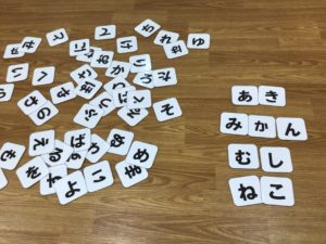 まず、バラバラに平仮名カードを並べます。