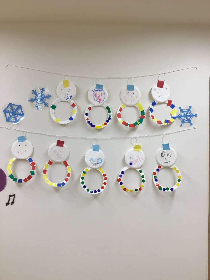 今回の雪だるま作りでは保護者の方が、製作する様子や出来上がった作品を見て、「シールが貼れるようになったんだ!」「顔が描けるようになったんだ!」「ハサミをがんばって使ってた!」など、お子様の成長を感じていらっしゃいました😊