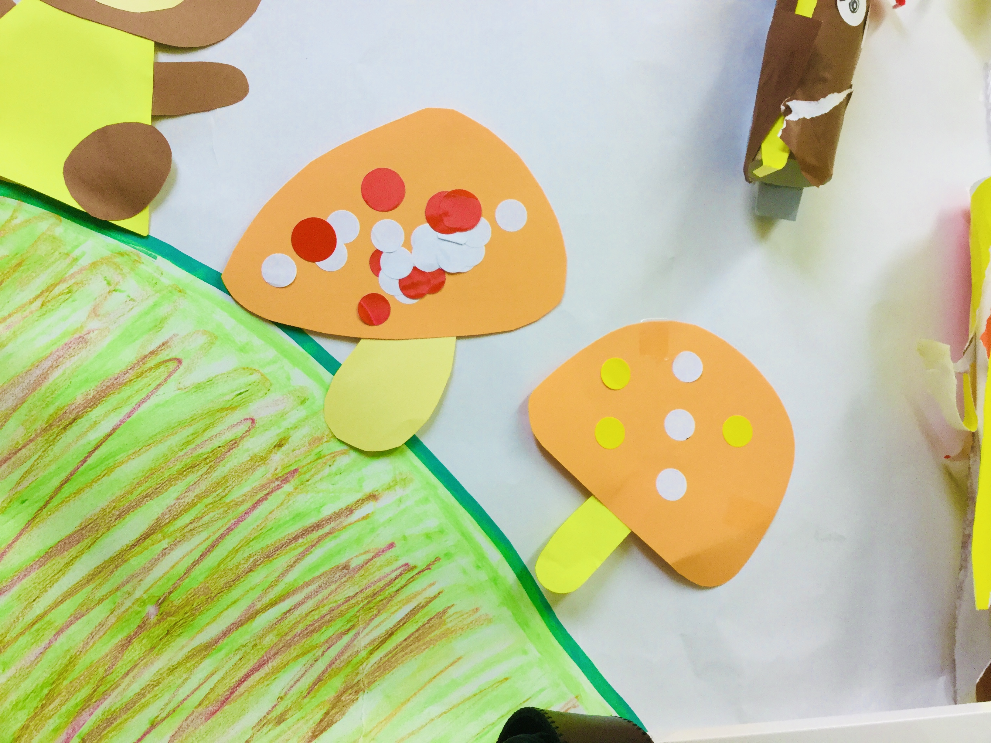 きのこの模様をシールで貼って、かわいいきのこ🍄を作ることが出来ました!