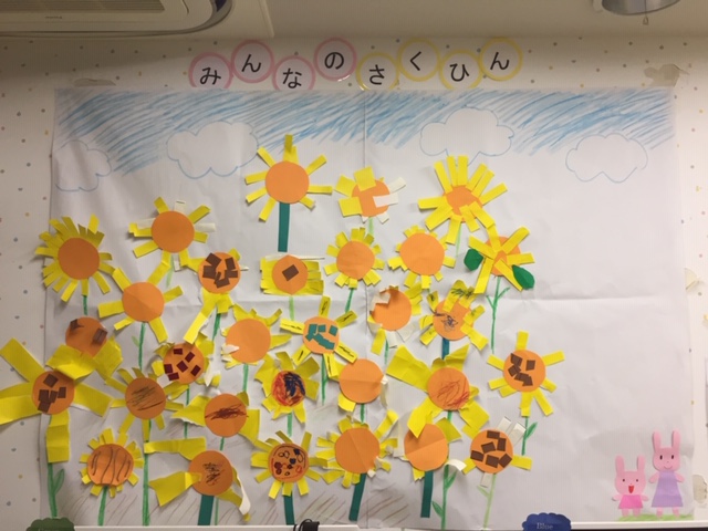 それでは、最後に8月の壁面(ひまわり畑)をご覧下さい![]()