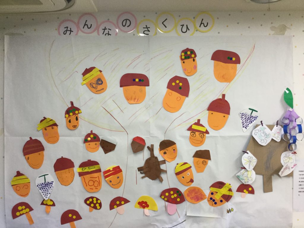 今月のハビー所沢教室の壁面は、ドングリやキノコがたくさん実っています!