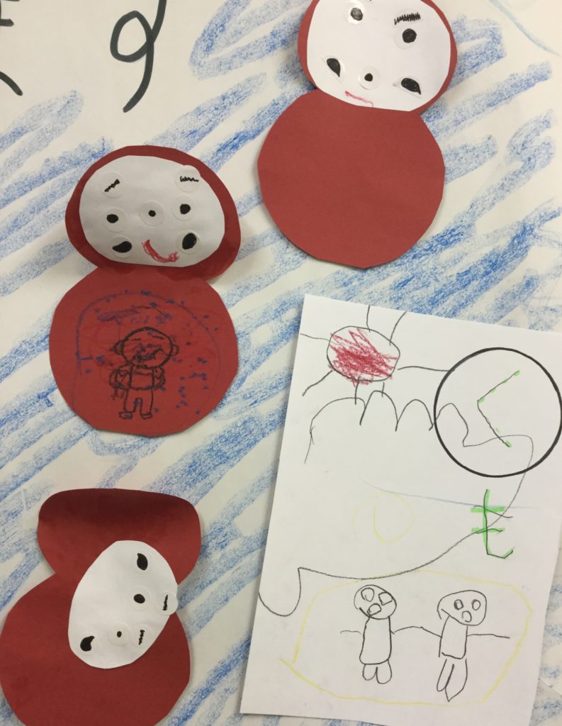雪だるまやブーツ、サンタさんなど、お子さん達は思い思いにウキウキしながらクリスマスのお話をして作っていました![]()