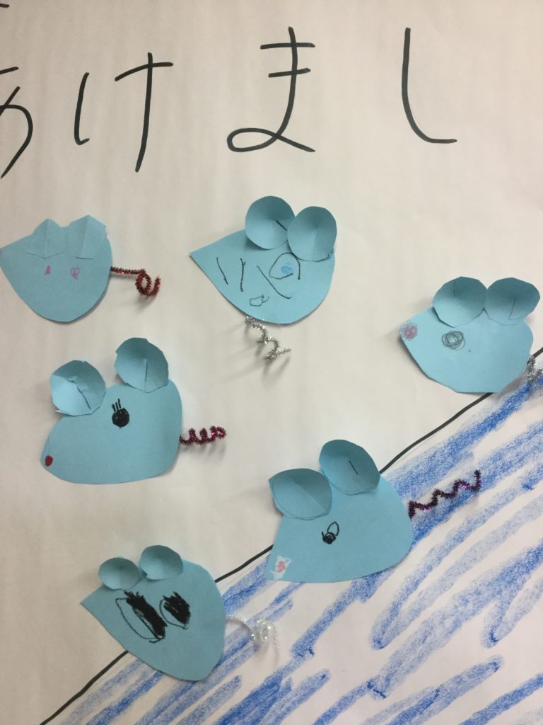年末イベントでは、年賀状をつくりました。今年の干支の「ネズミ」を、お手本通りに色を塗るお子さん、個性あふれる色彩で色を塗るお子さん、お互いのネズミを見て楽しそうに話をしながら、思い思いに年賀状作りを楽しんでいました![]()