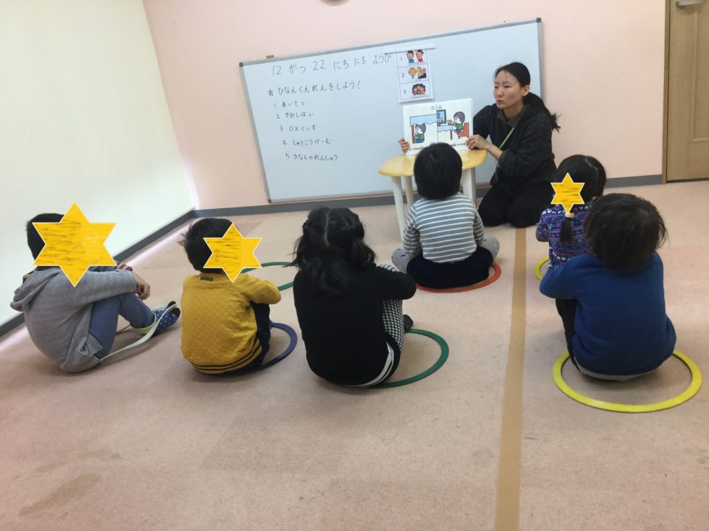 また、お子さんの状況に合わせて、「あけましておめでとう」のシールを貼ることや、ひらがなの模写を行うことなどを行い、見る力や手先の巧緻性に向けて行わせていただきました。