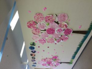 津田沼教室では、手形とちぎり絵の桜が満開です。
