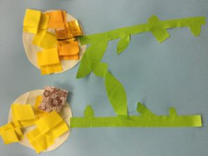 ちぎる事が難しいお子様やのりの感触に戸惑いがあるお子様は保護者様に手伝ってもらい進めていきました。