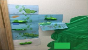 「これを作るよー」と見本を見せると「枝豆だ―!」と、目を輝かせていました。制作の時間になると夢中になり、楽しく取り組んでいました。