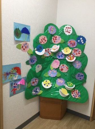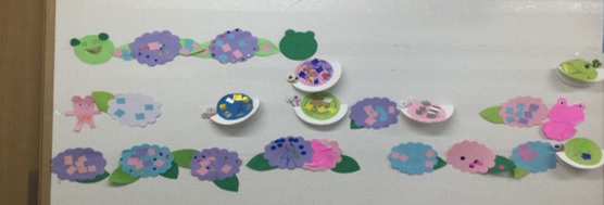 シールを使用したりと綺麗にあじさいが咲きました☺